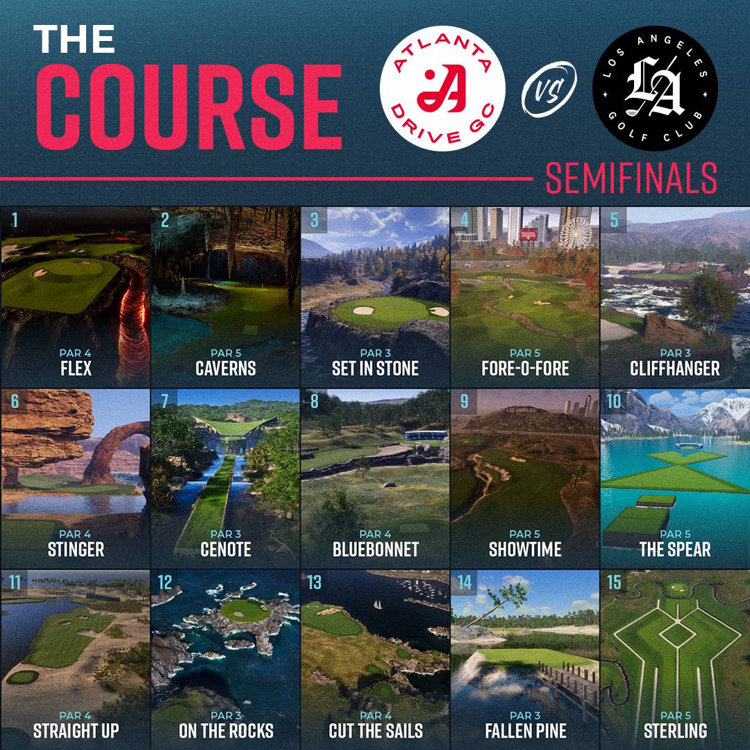 Technically, there are two different courses tonight. In Season 1, TGL Officials used one scorecard for both semifinal matches. They have done it again. The only changes to the course for Matches 16 and 17 are the home holes. Los Angeles and Atlanta feature their team holes in the early match, and Boston and Jupiter utilize their home holes in the second. Why can't we have two courses? Match 16 features a layout measuring 5,797 yards; Match 17 is 5,751 yards. These routings are short by TGL standards. Six thousand yards is always my measuring threshold for length on these par 60 courses. No doubt length will not be as much of a factor as it was in Ponte Vedra Beach! Six Season 2 holes (new) are being used. Our favorites, Stinger and Caverns, are in the first six holes. Seven of the nine remaining holes are repeats from the Season 1 semifinal course. The average par 4 for a playoff match is 409 yards. I realize some of the shorter holes possess more volatility, but two par 3s under 140, and TGL is looking for more eagle and hole-in-one magic. ​​​​​​​​​​​​​​​​​​​​​​​​​​​​​​​​​​​​​​​​​​​​​​​​​​​​​​​​​​​​​​​​​​​​​​​​​​​​​​​​​​​​​​​​​​​​​​​​​​​​​​​​​​​​​​​​​​​​​​​​​​​​​​​​​​​​​​​​​​​​​​​​​​​​​​​​​​​​​​​​​​​​​​​​​​​​​​​​​​​​​​​​​​​​​​​​​​​​​​​​​​​​​​​​​​​​​​​​​​​​​​​​​​​​​​​​​​​​​​​​​​​​​​​​​​​​​​​​​​​​​​​​​​​​​​​​​​​​​​​​​​​​​​​​​​​​​​​​​​​​​​​​​​​​​​​​​​​​​​​​​​​​​​​​​​​​​​​​​​​​​​​​​​​​​​​​