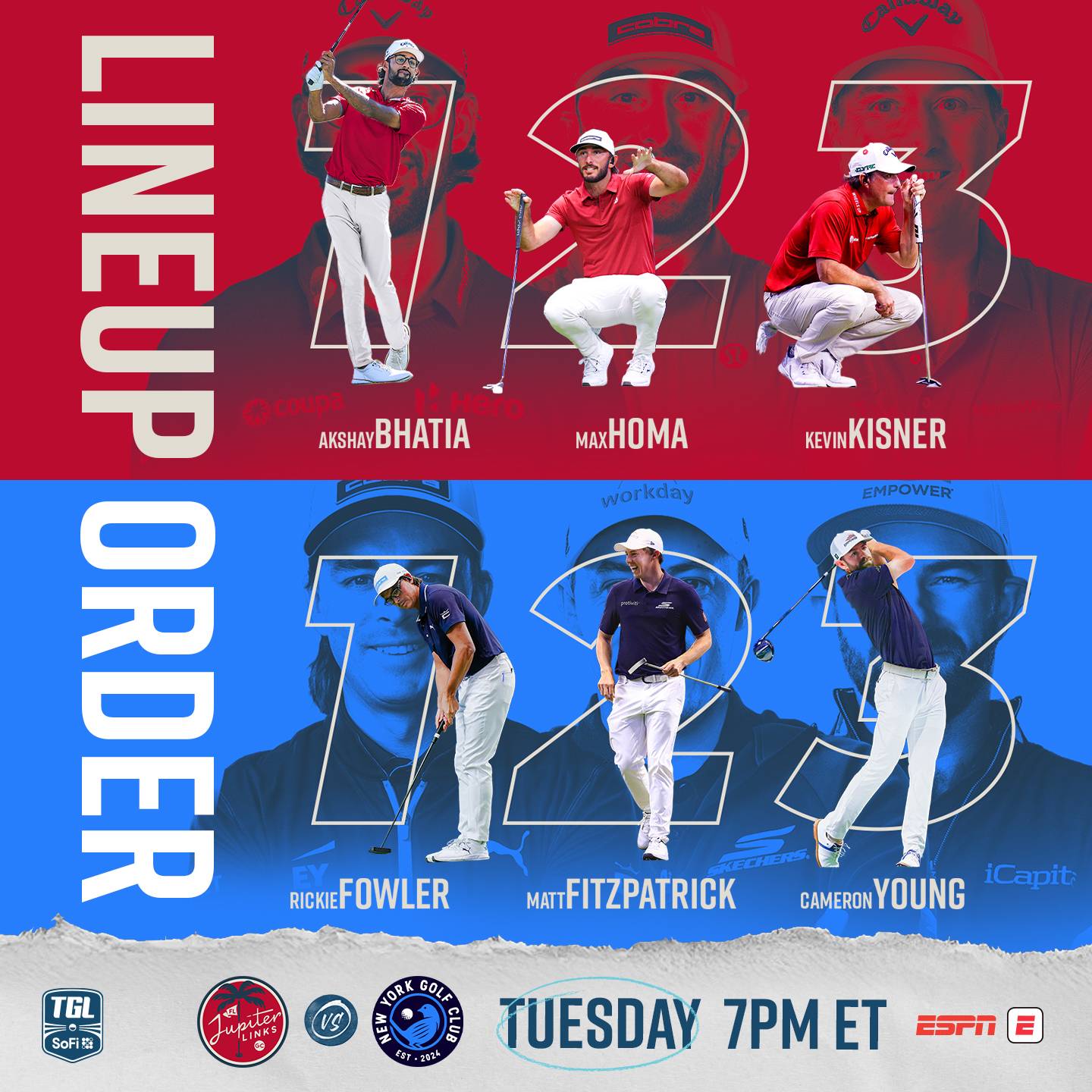 Eight of these holes were used when these two teams met back in Season 1, and NYGC won by seven points. New York also competed on nine of these holes in Match 1 of Season 2. Experience is probably the biggest edge a team can have in the SoFi Center. New York started Season 1 0-2, still made the playoffs, and ultimately lost in the finals. Jupiter Links GC was a mess in Season 1. Their two most prominent match memories were Kisner skulling a bunker shot off the pin and Tiger hitting a 199-yard shot 99 yards. No team needed an offseason more than the hometown golf heroes. Will it make a difference when it comes to predicting our winner? Keep reading to find out.
