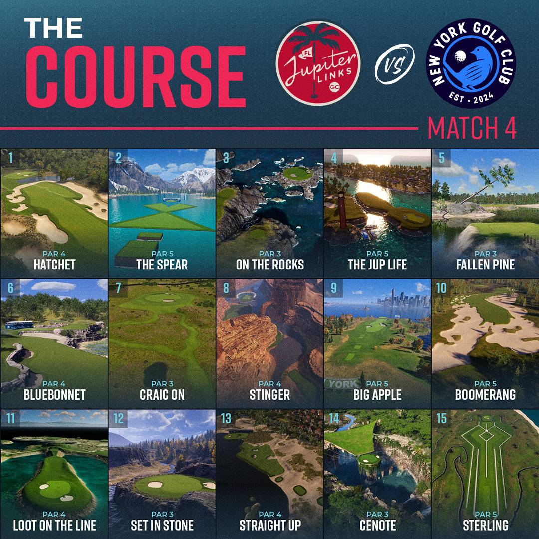 • Both team holes in this match were used in Season 1: Big Apple was called Pin Oak, and The Jup Life was called Pinery.